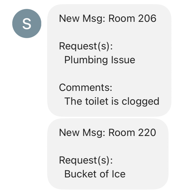 Guests use their own devices to communicate directly with your team. They start by scanning/tapping an in-room sign. There’s no hold time, and every request reaches the right staff member without delay, even if they’re away from the front desk. Staff review and respond to requests from an easy to use dashboard. Guests communicate with staff by simply replying to SMS notifications.